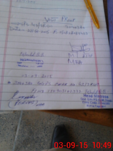 | Name: RE**** BI**** Designation: (School Headmaster's/Headmistress's) PST Phone/Cell Number: 03**** |