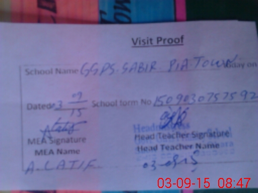 | EMIS Code: 39320998 | Name of School: GGPS SABIR PIA TOWN OKARA | |||
