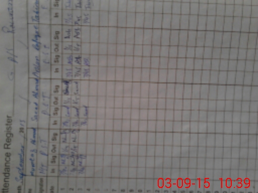 | Monitoring Date: 03-09-2015 | Start Time: 03-09-2015 10:22 AM | End Time: 03-09-2015 10:40 AM | Name of MEA: NA**** AH**** | |