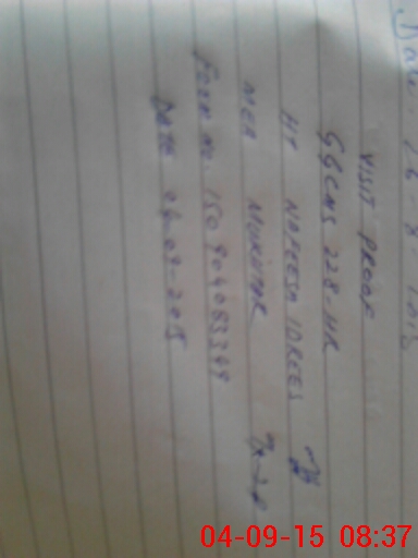 | Monitoring Date: 04-09-2015 | Start Time: 04-09-2015 08:20 AM | End Time: 04-09-2015 08:47 AM | Name of MEA: Mu**** ah**** BN**** 29 | |
