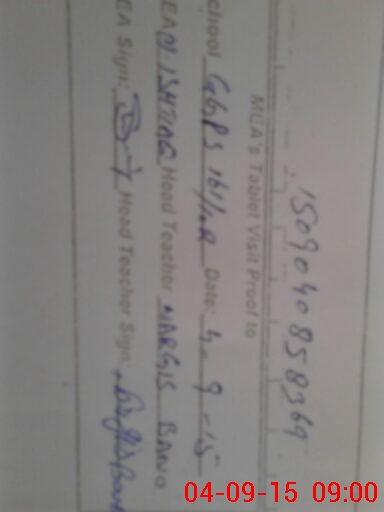 | Attendance Register | Head Teacher | MEA with School | Visit Proof |