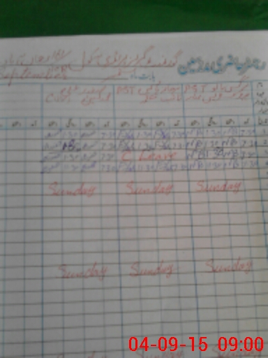 | CNIC | Full Name | Designation | R/C | Absence During Last Calender Month |