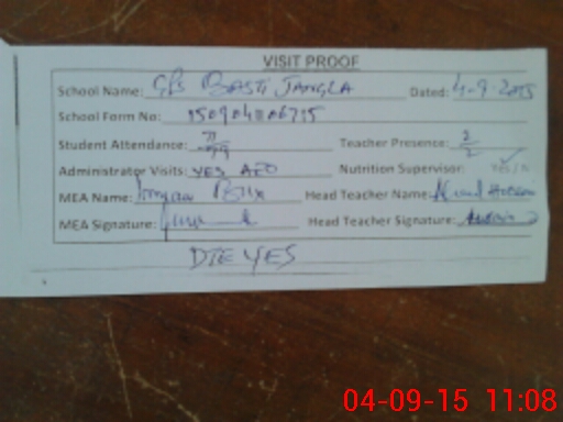 | Attendance Register | Head Teacher | MEA with School | Visit Proof |