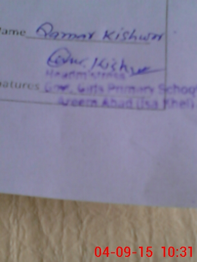 | Name: Bi**** Ak**** Designation: (School Headmaster's/Headmistress's) Pst Phone/Cell Number: 03**** |