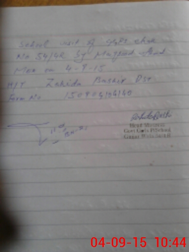 | EMIS Code: 31140331 | Name of School: GGPS 54/4R GUJAR WALI | |||