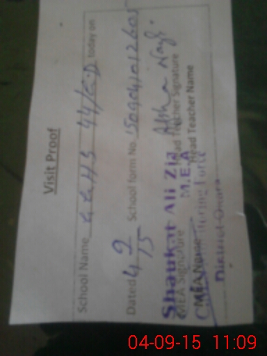 | School Visited by School Health & Nutrition Supervisor (No. of Visits) | 1 | Name1: | Muhammad Sharif | Name2: | |
