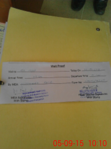 | Monitoring Date: 05-09-2015 | Start Time: 05-09-2015 09:53 AM | End Time: 05-09-2015 10:31 AM | Name of MEA: Mu**** Ra**** | |