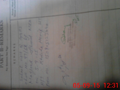 | School Visited by School Health & Nutrition Supervisor (No. of Visits) | 1 | Name1: | M EJAZ SABIR | Name2: | |
