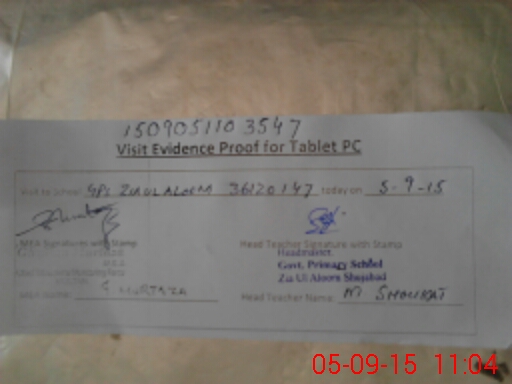 | Attendance Register | Head Teacher | MEA with School | Visit Proof |