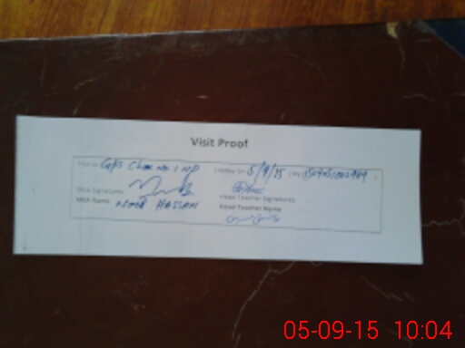 | Attendance Register | Head Teacher | MEA with School | Visit Proof |