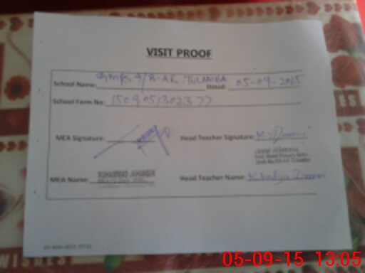 | Attendance Register | Head Teacher | MEA with School | Visit Proof |