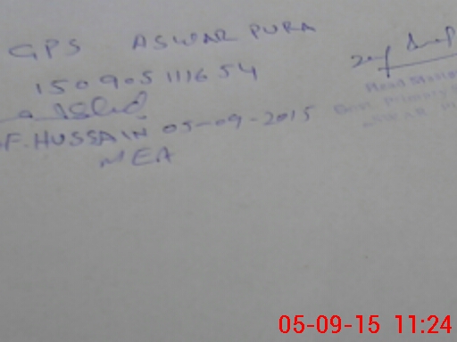 | Monitoring Date: 05-09-2015 | Start Time: 05-09-2015 10:38 AM | End Time: 05-09-2015 11:24 AM | Name of MEA: Al**** Hu**** BN**** | |