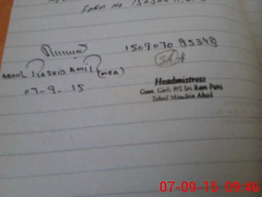| Name: IR**** BI**** Designation: (School Headmaster's/Headmistress's) P S T Phone/Cell Number: 03**** |