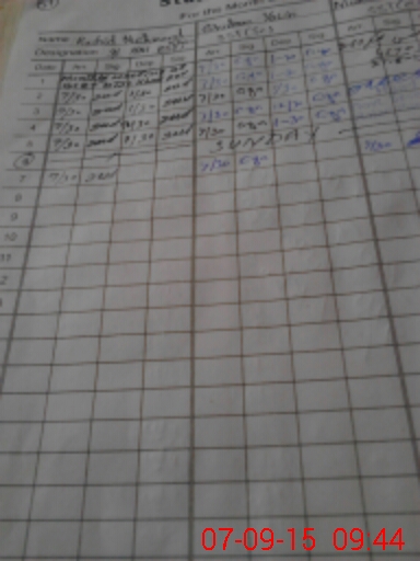| Monitoring Date: 07-09-2015 | Start Time: 07-09-2015 09:11 AM | End Time: 07-09-2015 10:18 AM | Name of MEA: Mu**** Ja**** An**** | |