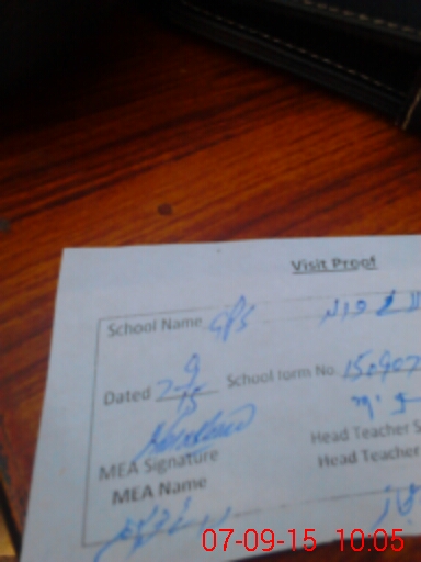 | Attendance Register | Head Teacher | MEA with School | Visit Proof |