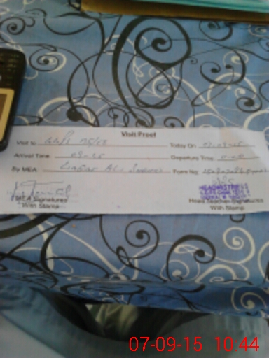 | Monitoring Date: 07-09-2015 | Start Time: 07-09-2015 09:45 AM | End Time: 07-09-2015 10:44 AM | Name of MEA: Li**** Al**** Sh**** (R**** | |