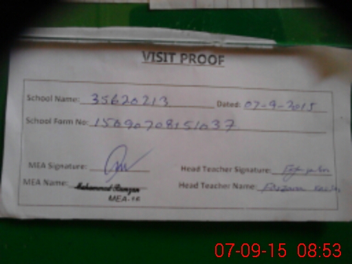 | Attendance Register | Head Teacher | MEA with School | Visit Proof |