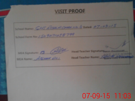 | EMIS Code: 35430016 | Name of School: GHS RASALA CHAK NO. 4 | |||