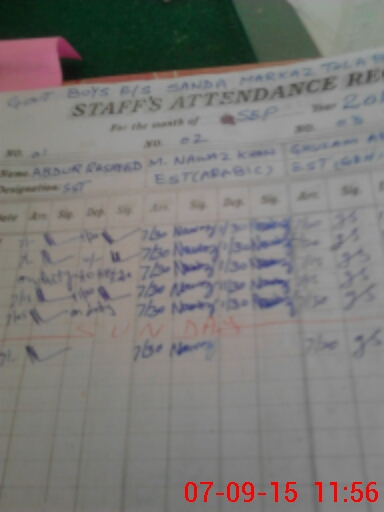 | CNIC | Full Name | Designation | R/C | Absence During Last Calender Month |