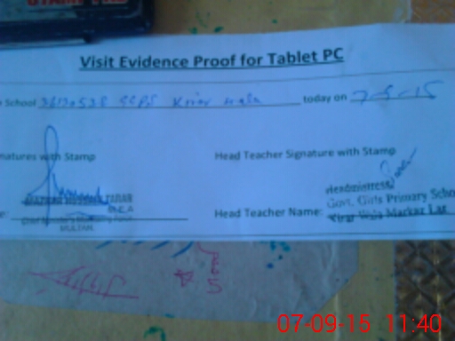 | Attendance Register | Head Teacher | MEA with School | Visit Proof |