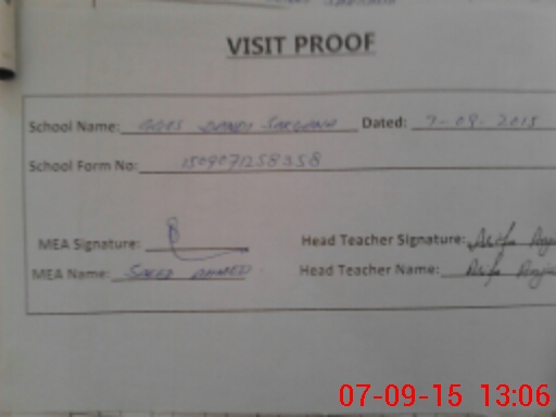 | Attendance Register | Head Teacher | MEA with School | Visit Proof |