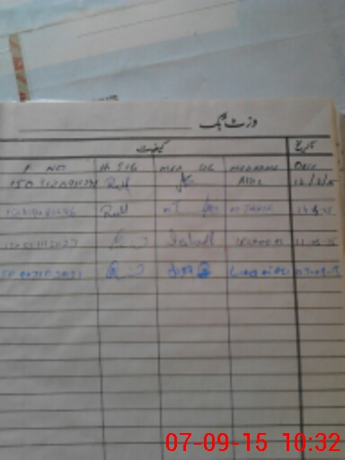 | CNIC | Full Name | Designation | R/C | Absence During Last Calender Month |