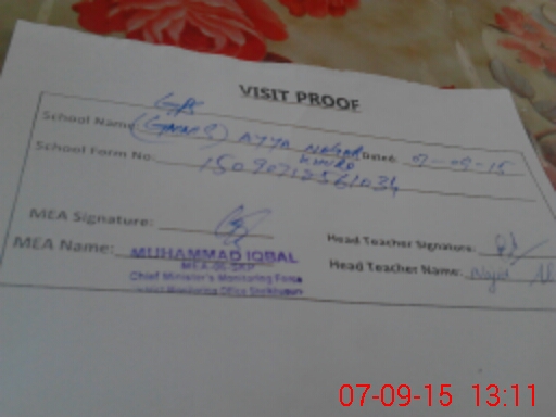 | Attendance Register | Head Teacher | MEA with School | Visit Proof |