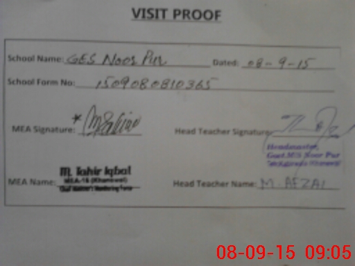 | EMIS Code: 36410209 | Name of School: GES NOOR PUR, KABIRWALA | |||