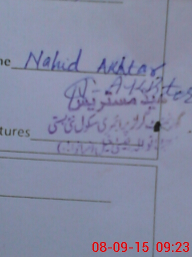| Name: Me**** Fa**** Designation: (School Headmaster's/Headmistress's) PST Phone/Cell Number: 03**** |