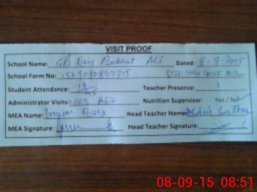 | Attendance Register | Head Teacher | MEA with School | Visit Proof |