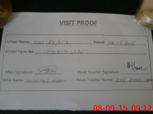 | Attendance Register | Head Teacher | MEA with School | Visit Proof |