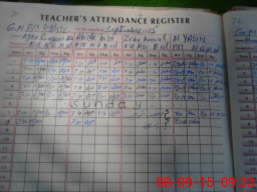 | Remarks (Use Separate Page if Required): ZEBA KANWAL ESE ABSENT wef 07 09 2015 AND LEAVE NOT AVAILABLE and N S B not properly used | |||||