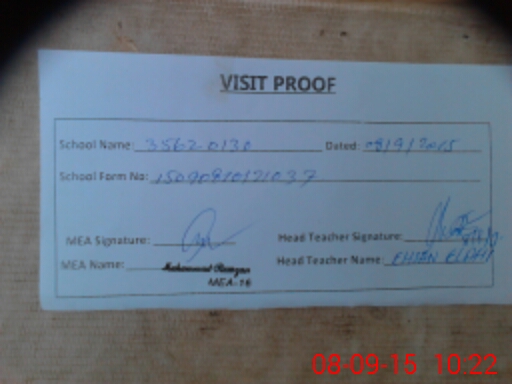| Attendance Register | Head Teacher | MEA with School | Visit Proof |