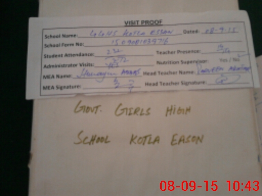 | Attendance Register | Head Teacher | MEA with School | Visit Proof |
