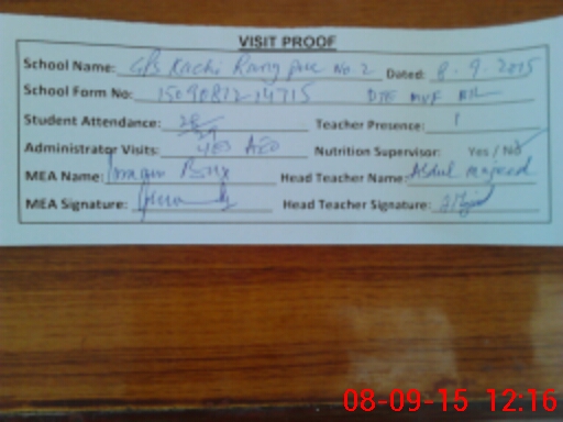 | Attendance Register | Head Teacher | MEA with School | Visit Proof |