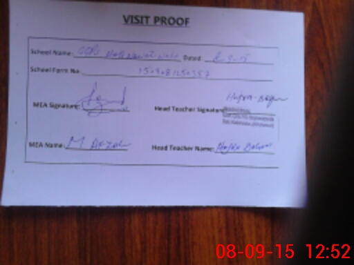| Attendance Register | Head Teacher | MEA with School | Visit Proof |