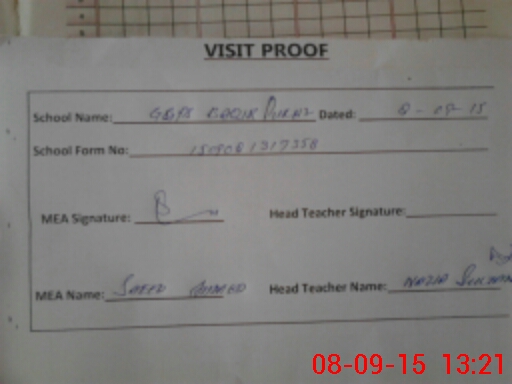 | Attendance Register | Head Teacher | MEA with School | Visit Proof |
