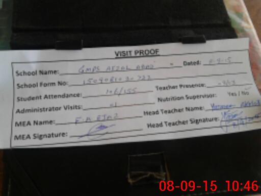 | Attendance Register | Head Teacher | MEA with School | Visit Proof |