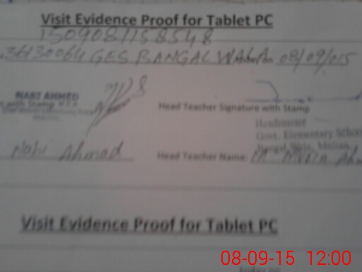 | Attendance Register | Head Teacher | MEA with School | Visit Proof |