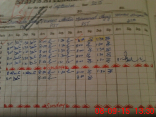 | CNIC | Full Name | Designation | R/C | Absence During Last Calender Month |
