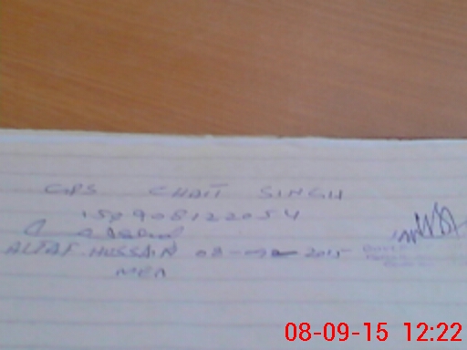 | Monitoring Date: 08-09-2015 | Start Time: 08-09-2015 11:44 AM | End Time: 08-09-2015 12:22 PM | Name of MEA: Al**** Hu**** BN**** | |