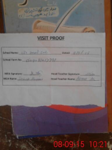 | School Visited by School Health & Nutrition Supervisor (No. of Visits) | 1 | Name1: | Ali Ahmed Zia | Name2: | |