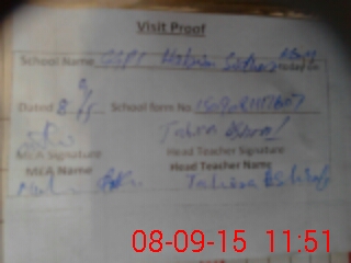 | Attendance Register | Head Teacher | MEA with School | Visit Proof |