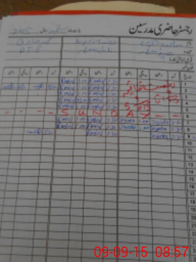 | CNIC | Full Name | Designation | R/C | Absence During Last Calender Month |