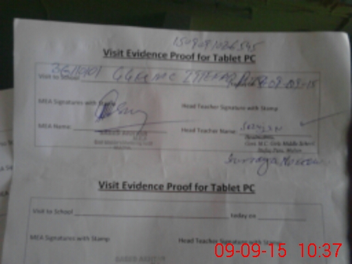 | Attendance Register | Head Teacher | MEA with School | Visit Proof |