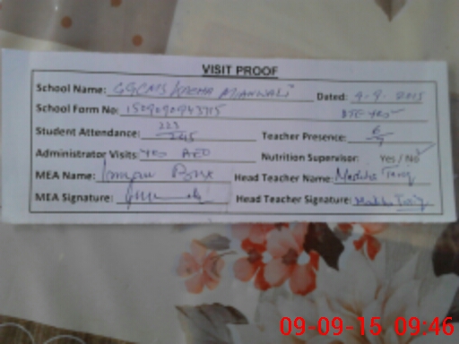 | Attendance Register | Head Teacher | MEA with School | Visit Proof |