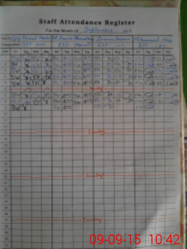 | CNIC | Full Name | Designation | R/C | Absence During Last Calender Month |