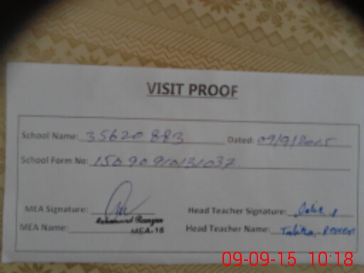 | Attendance Register | Head Teacher | MEA with School | Visit Proof |