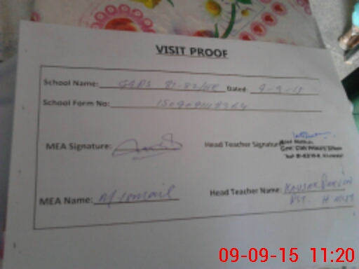 | Attendance Register | Head Teacher | MEA with School | Visit Proof |