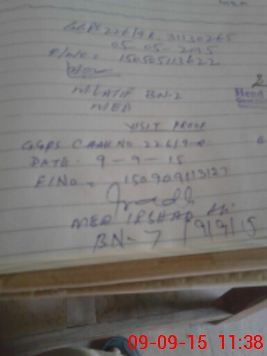| Monitoring Date: 09-09-2015 | Start Time: 09-09-2015 11:08 AM | End Time: 09-09-2015 11:39 AM | Name of MEA: Ir**** Al**** BN**** 07 | |